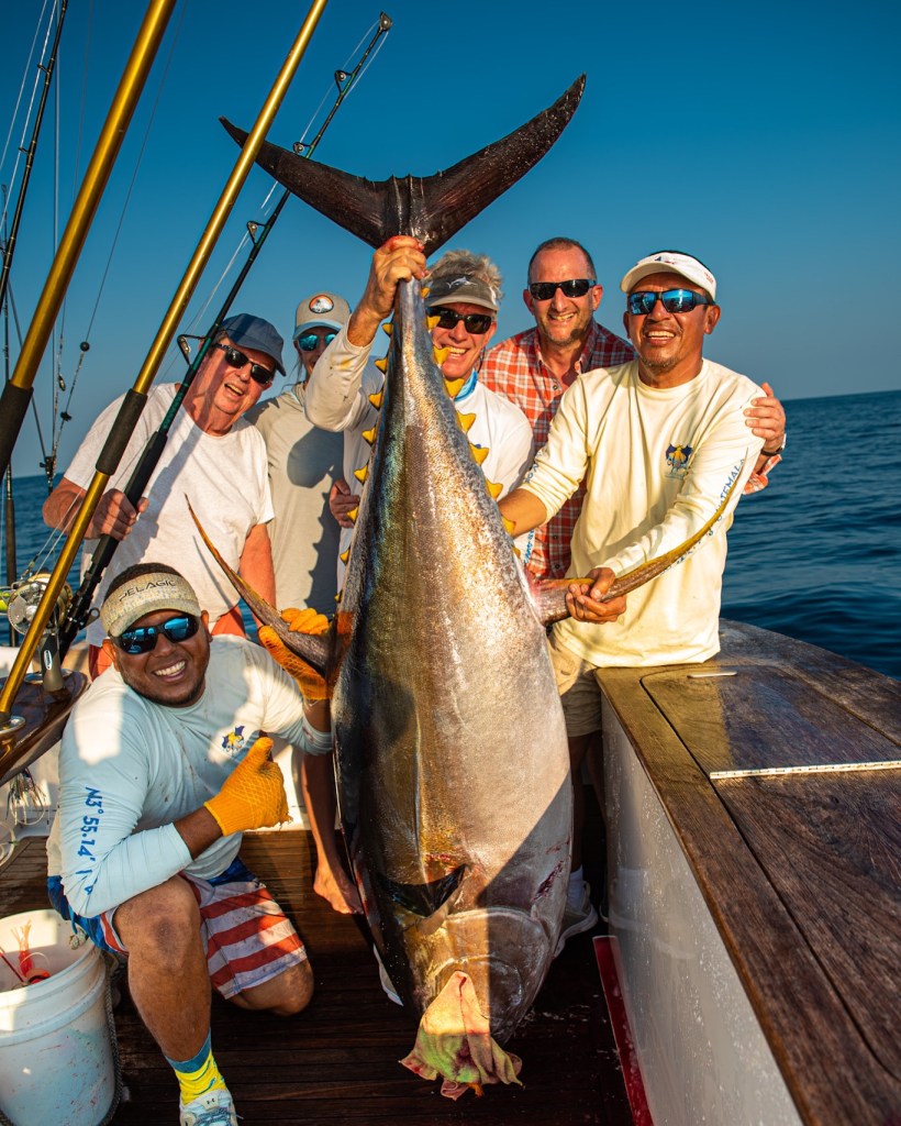 The crew and I finally had a chance to catch our breath and measure the fish. I think it was 75 inches long by an I don’t remember the girth, but it was a lot. The net, the fish estimate was 270+, the largest yellowfin the boat had ever taken.
