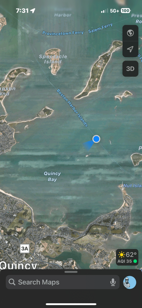 No real bird action in Hingham or Hull bays, we headed towards Squantum and nothing there. Next we headed towards Boston and Spectacle Island as we both had seen boats there last few mornings.