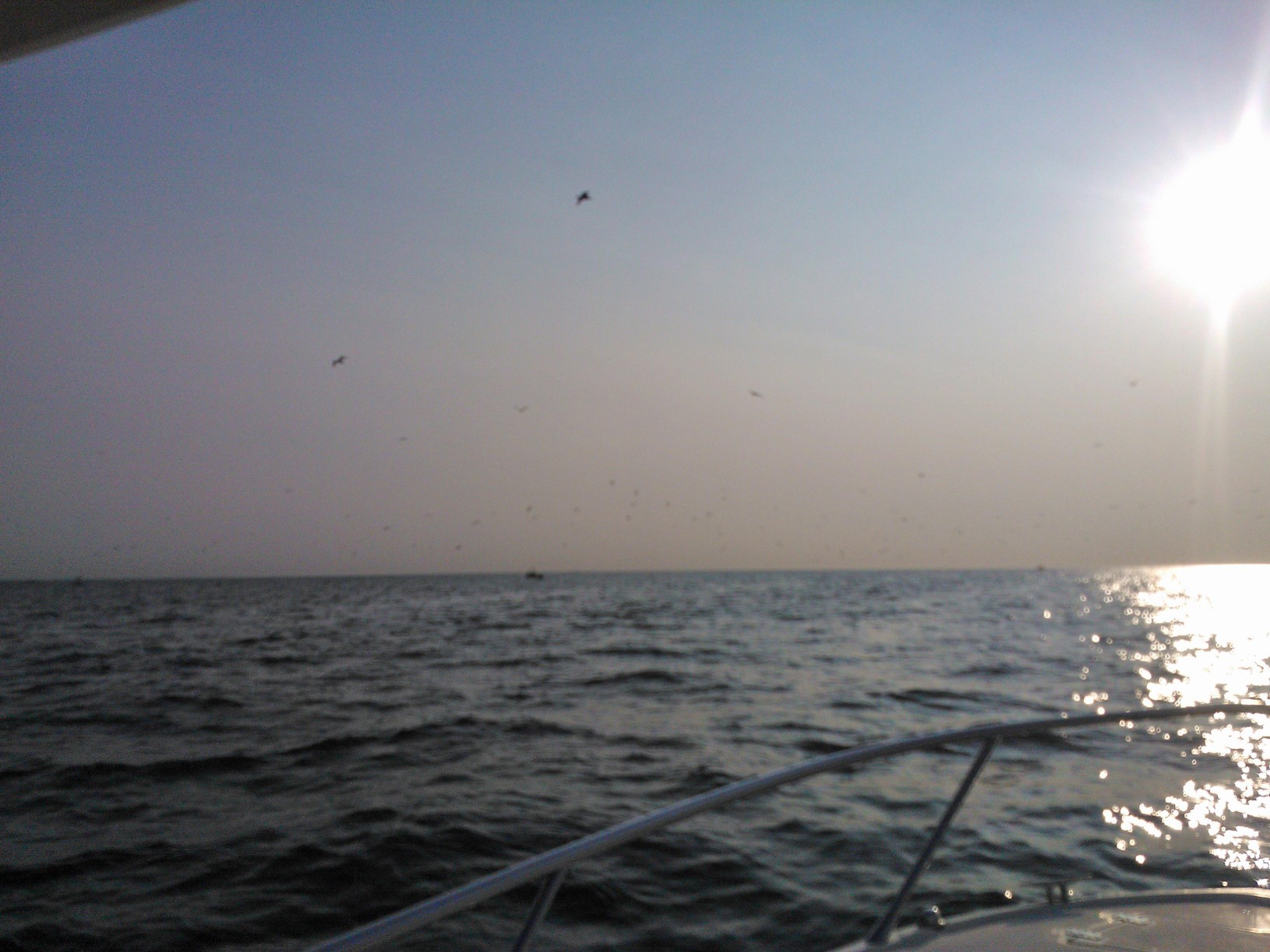 Then saw a lot of birds and boats in the triangle between between Georges, Rainsford and Peddocks, so moved over there to with them. Caught a small schooly on 3rd cast (around 6:20am). While fighting him (small so definitively a him…), got boat tangled in lobster pot line. Once I’d released fish and untangled myself from the lobster, I looked around and all the boats had gone. Saw a boat heading out towards Little Brewster / Point Allerton, used the binoculars to see what was going on and saw a number of boats huddled up. I headed that way to see what was up.