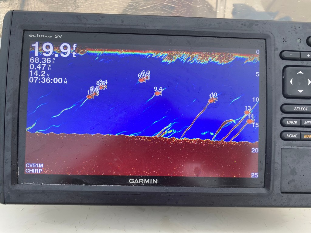 Hooked up pretty quick on the Thomas & Thomas 9wt fly rod, only to snap him off. The loop to the fly had been severed, so thinking it could be bluefish, changed to wire leader. No strikes, so changed back to deciever and smack quickly got another hit.